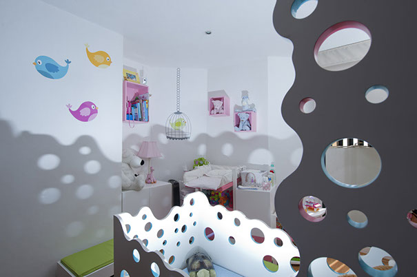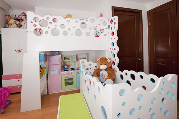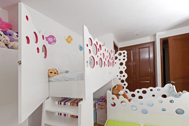 Este proyecto se realiza en un nuevo y moderno desarrollo habitacional en Bosques de las Lomas, en la Ciudad de México. El departamento con poco más de 300 m2 requería de un proyecto de diseño para prácticamente todo el espacio, siendo las áreas a desarrollar la habitación principal, habitación de niñas, estudio, sala TV, sala-comedor y cocina.